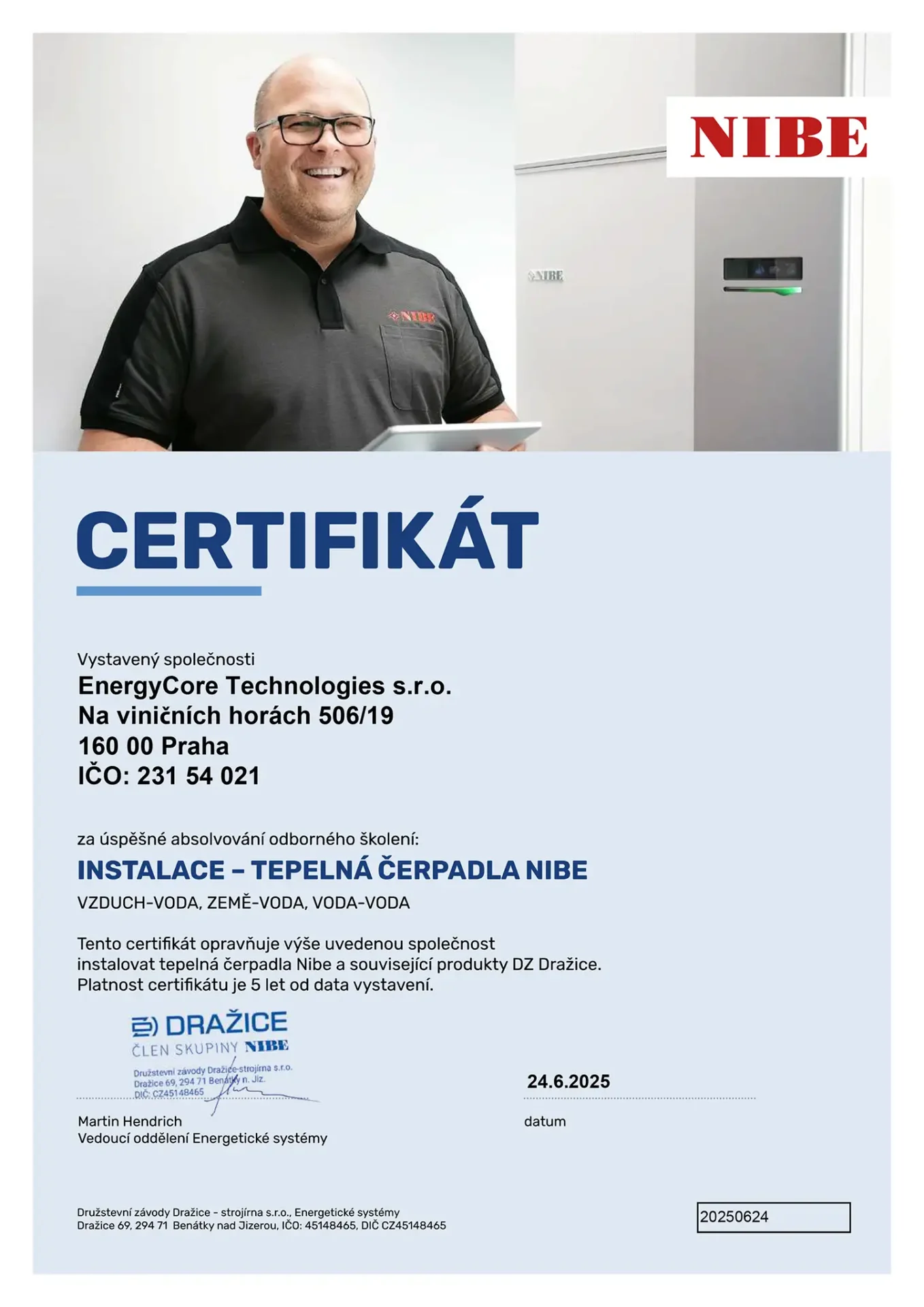 Jsme tým odborníků s více než 20 lety zkušeností v oblasti technických zařízení budov (TZB). Od roku 2004 přinášíme inovativní řešení v topenářství, chlazení a vodoinstalacích. Byli jsme mezi prvními, kdo v Česku instaloval výkonná tepelná čerpadla na bytové domy, historické objekty, rodinné domy i pro známé osobnosti. Po 17 letech spolupráce s předním německým výrobcem světového významu jsme se vydali na vlastní podnikatelskou dráhu, abychom Vám nabídli ještě osobnější a flexibilnější přístup.